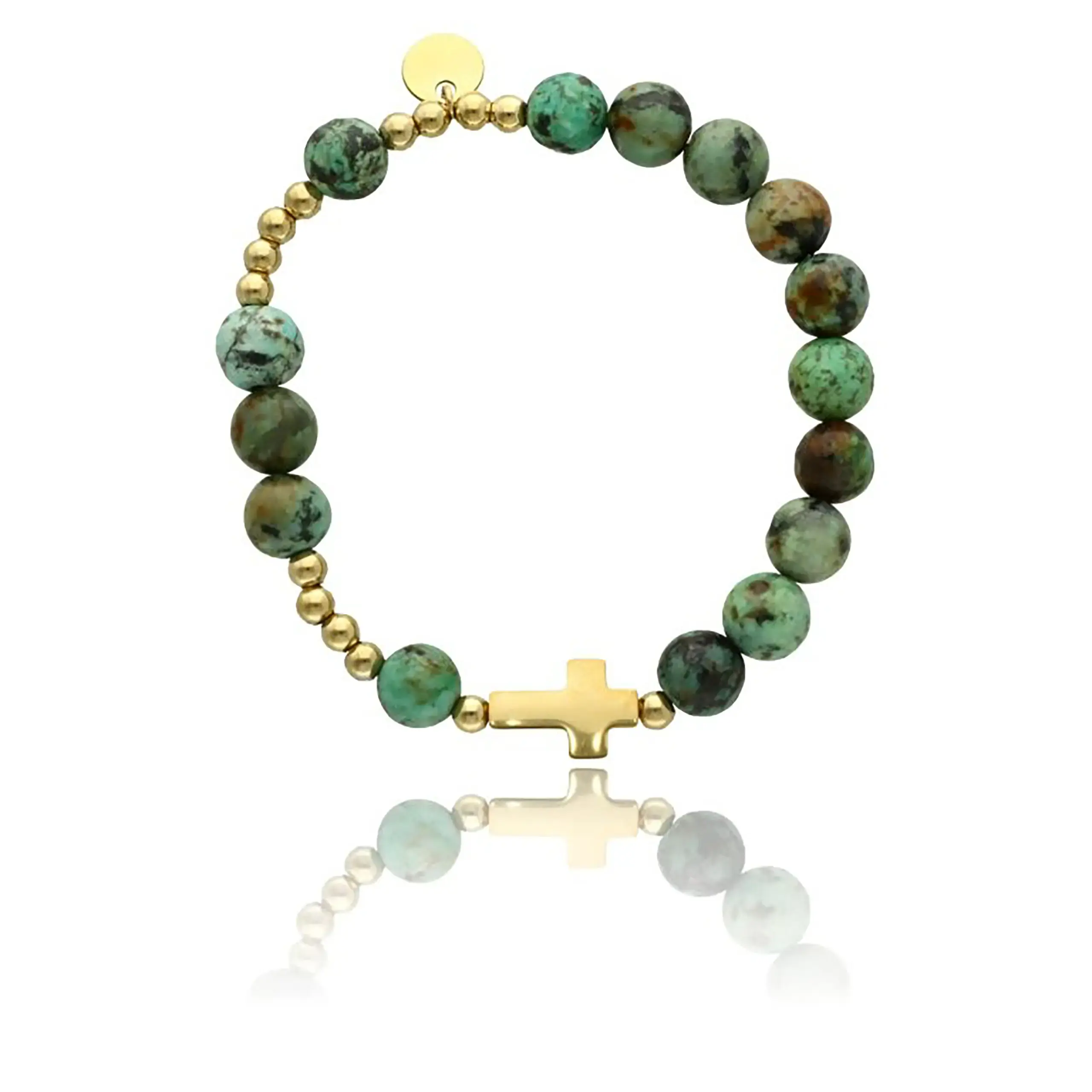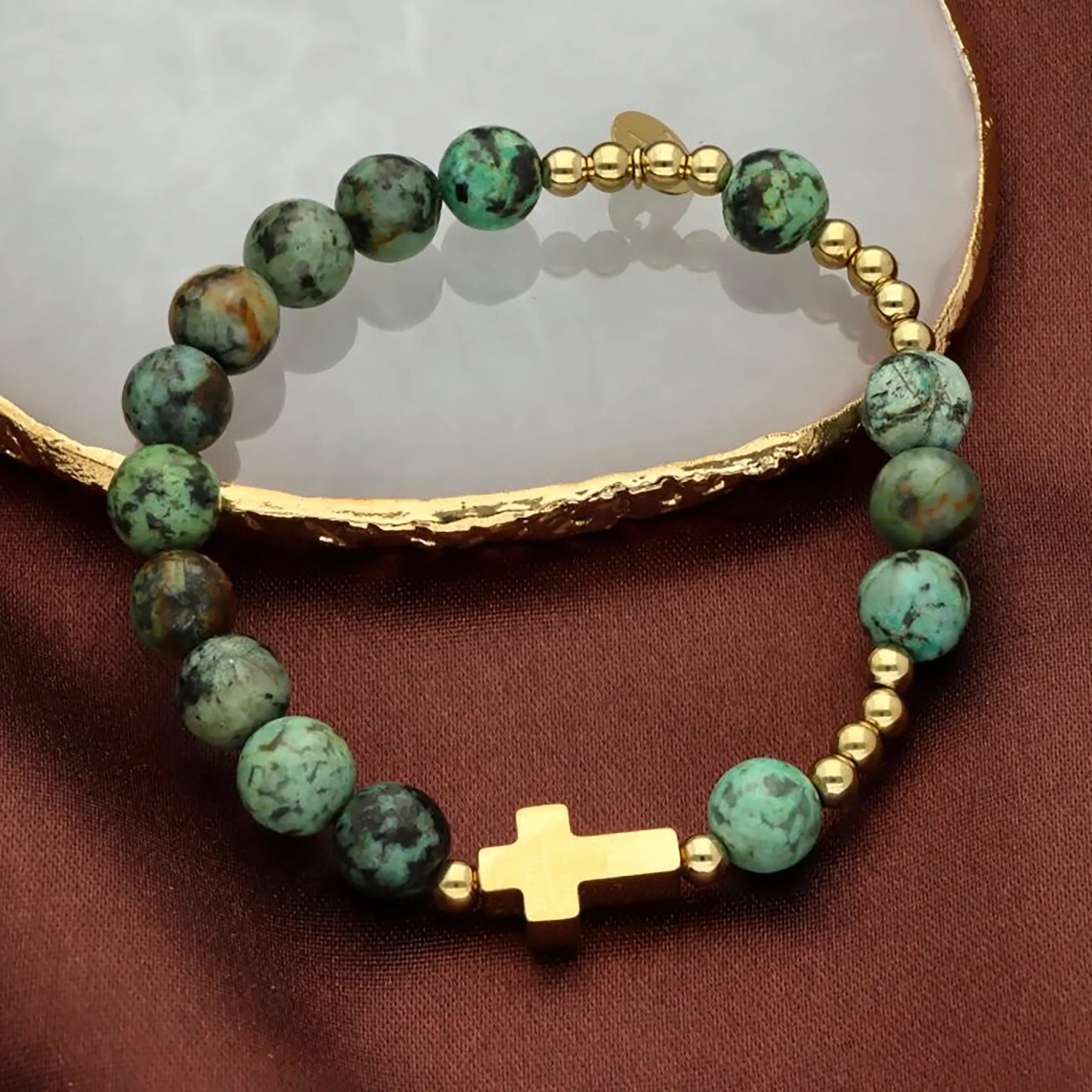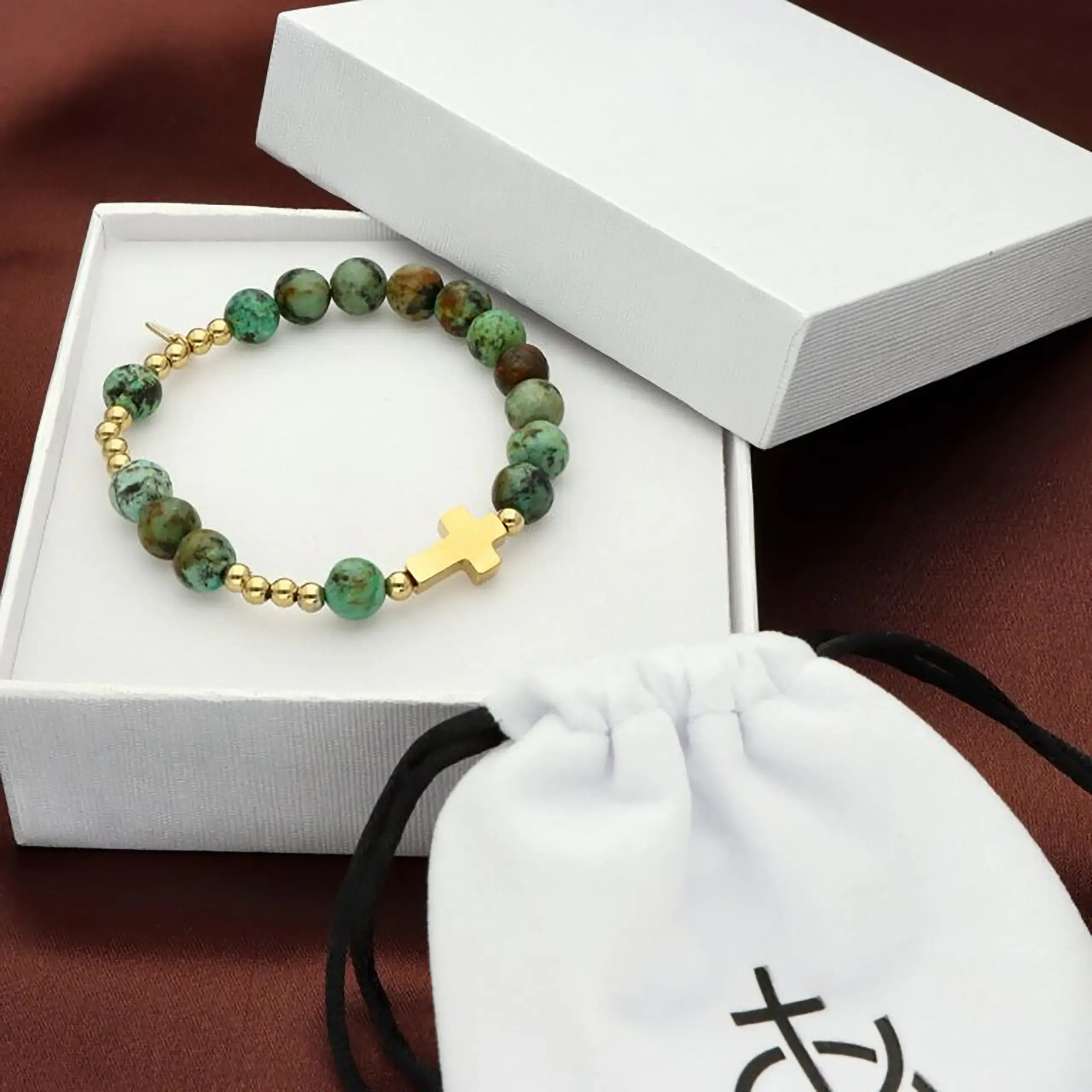 Bransoletka różaniec z turkusu afrykańskiego ZŁOTY KRZYŻYK