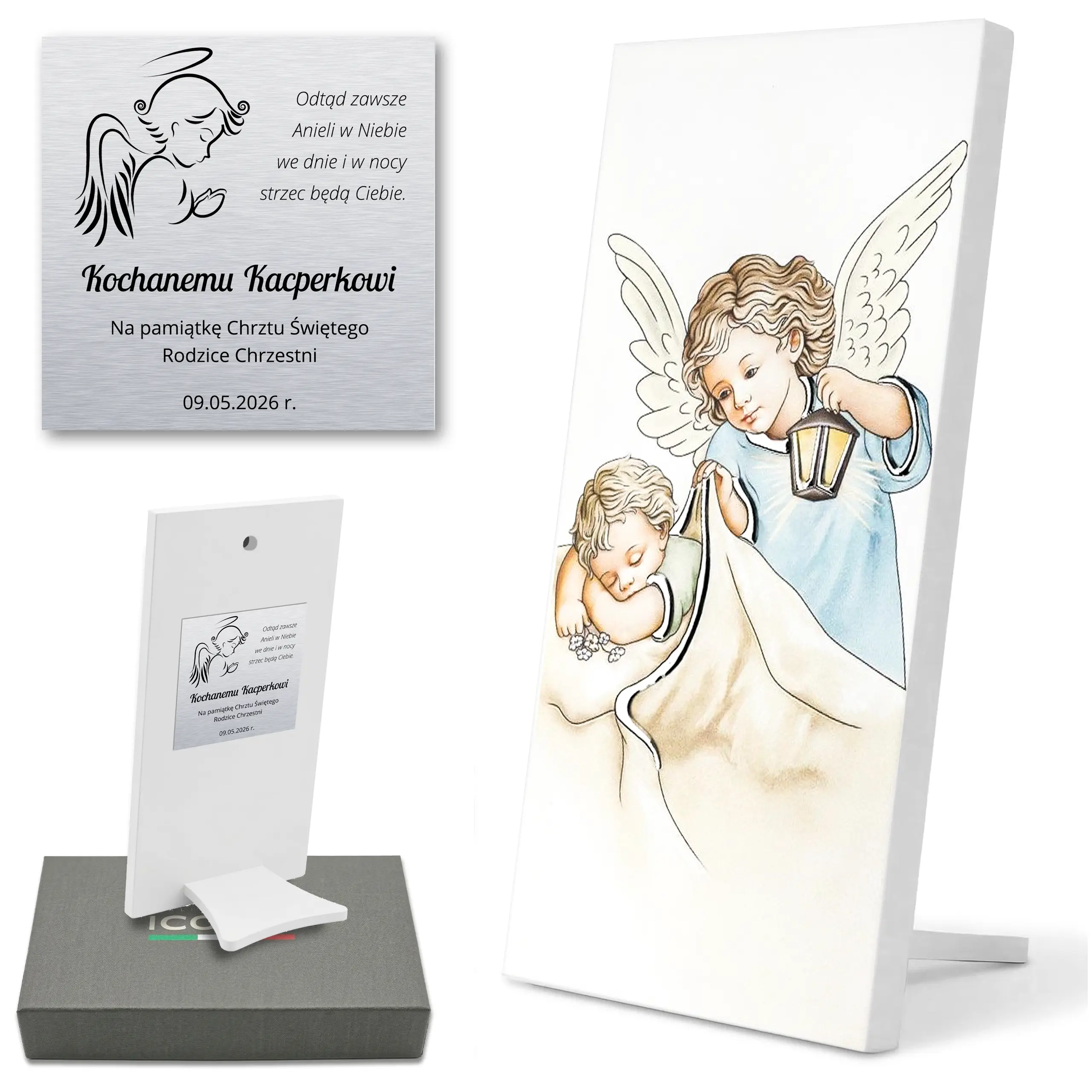 Jeśli szukasz eleganckiego i symbolicznego upominku – wybierz obrazek Anioła Stróża na Chrzest i podaruj dziecku wyjątkową pamiątkę, która będzie przypominać o dniu Chrztu Świętego przez całe życie.