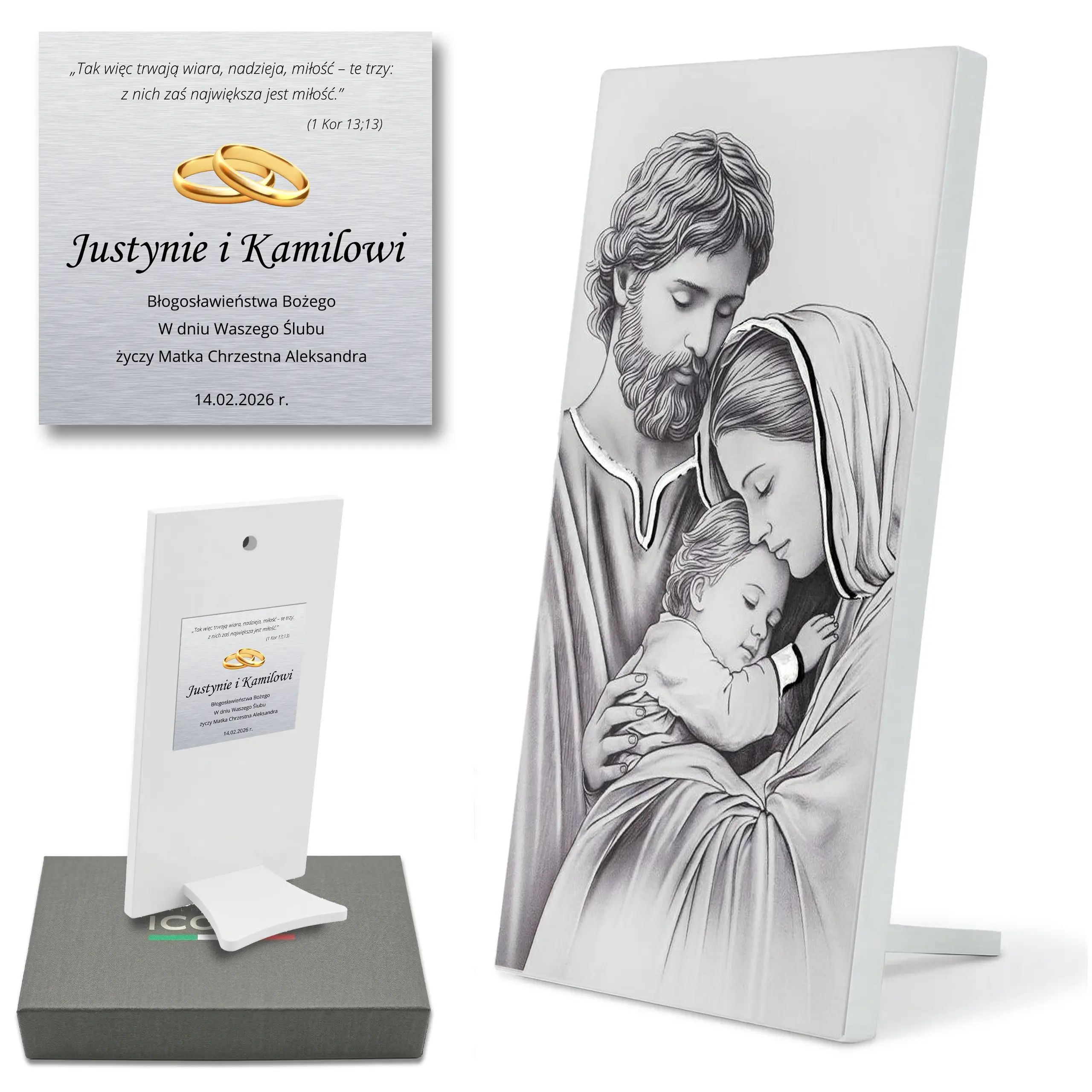 Tak. Motyw Świętej Rodziny symbolizuje miłość i jedność, dlatego jest jedną z najpiękniejszych religijnych pamiątek dla nowożeńców.