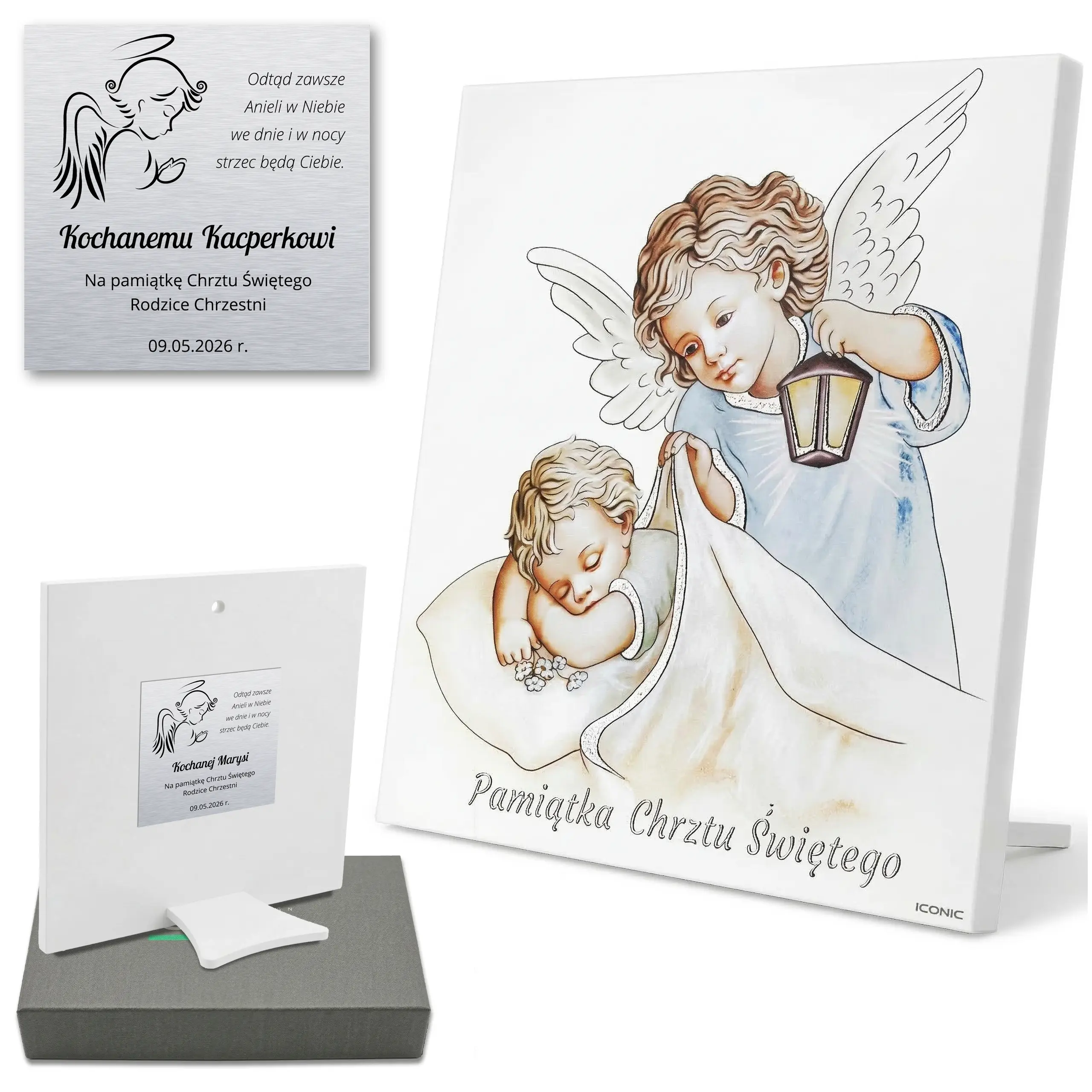 Pamiątka chrztu świętego OBRAZEK ANIOŁ STRÓŻ Z GRAWEREM IC119-C