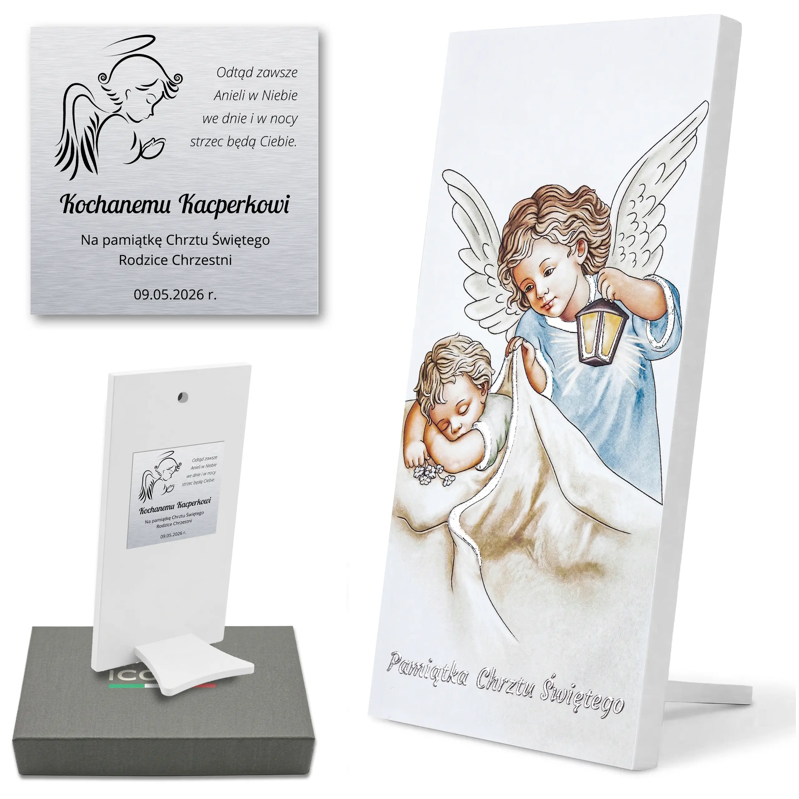 Pamiątka Chrztu Świętego dla chłopca OBRAZEK ANIOŁ STRÓŻ IC105S-C
