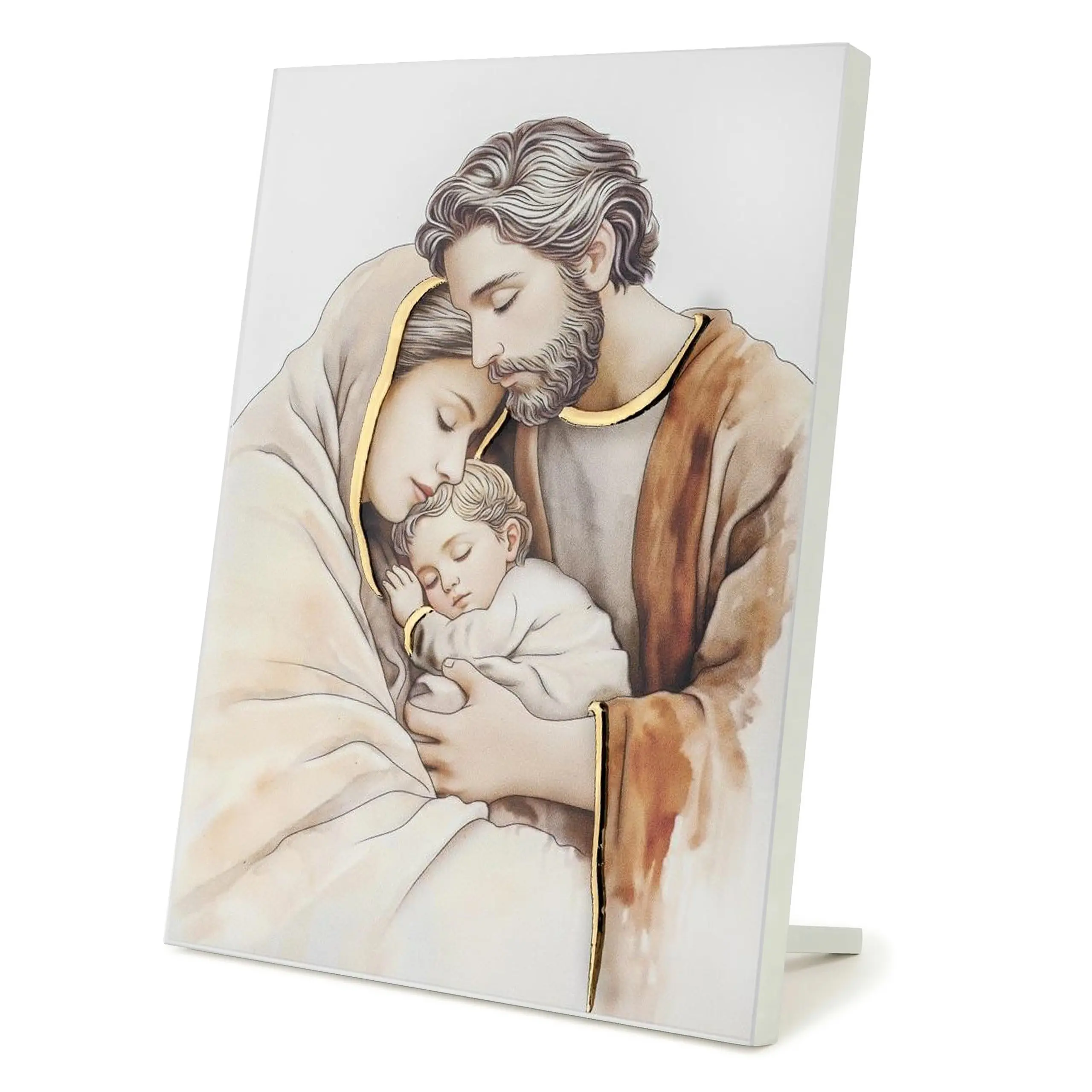 Pamiątka ślubu z wizerunkiem Świętej Rodziny to elegancki i pełen duchowej symboliki prezent dla młodej pary. Obraz przedstawiający Maryję, Świętego Józefa oraz Dzieciątko Jezus symbolizuje miłość, jedność i opiekę Bożą nad rodziną. Dzięki temu obrazek na ślub staje się nie tylko dekoracją domu, ale również codziennym przypomnieniem o wartościach, które budują trwałe i szczęśliwe małżeństwo.
