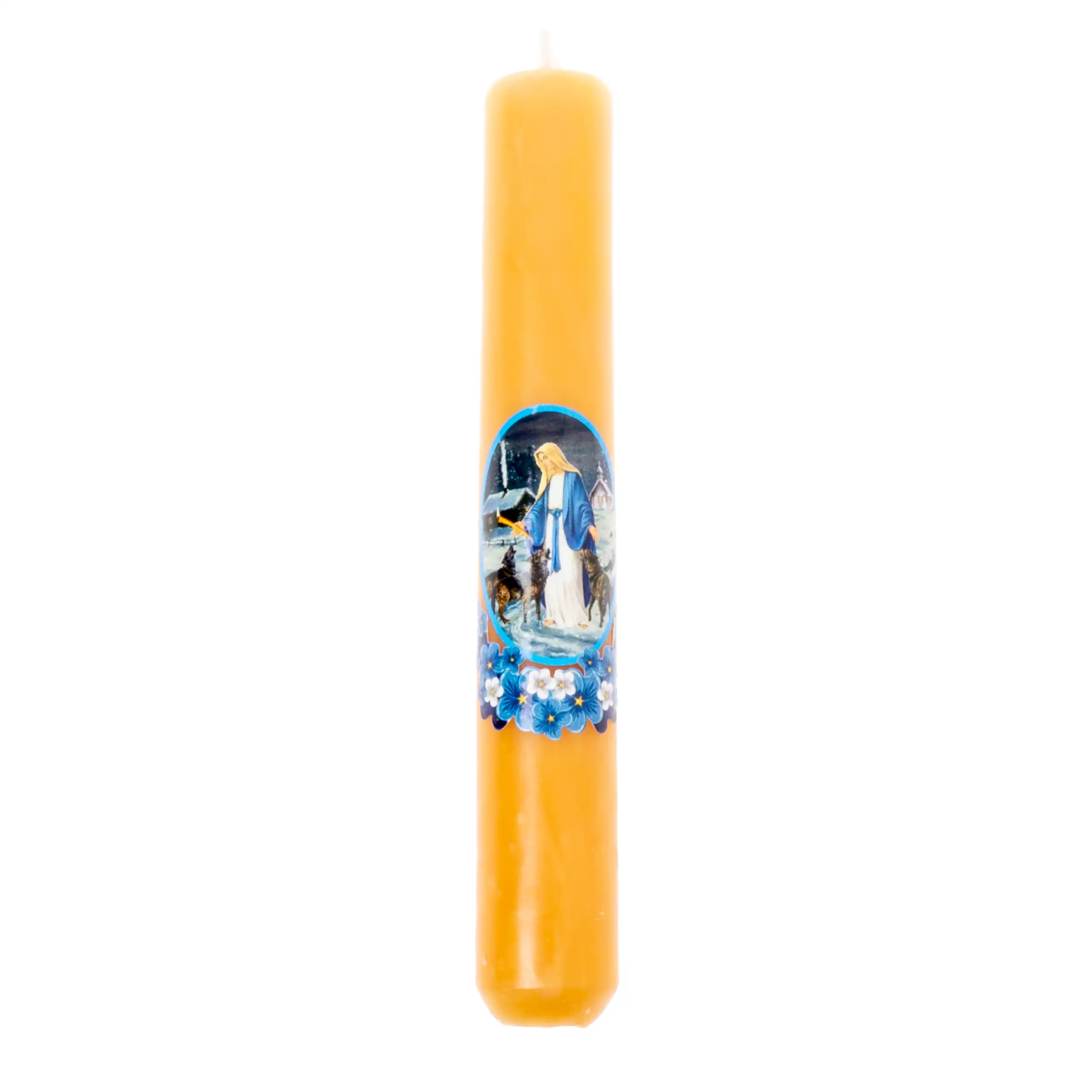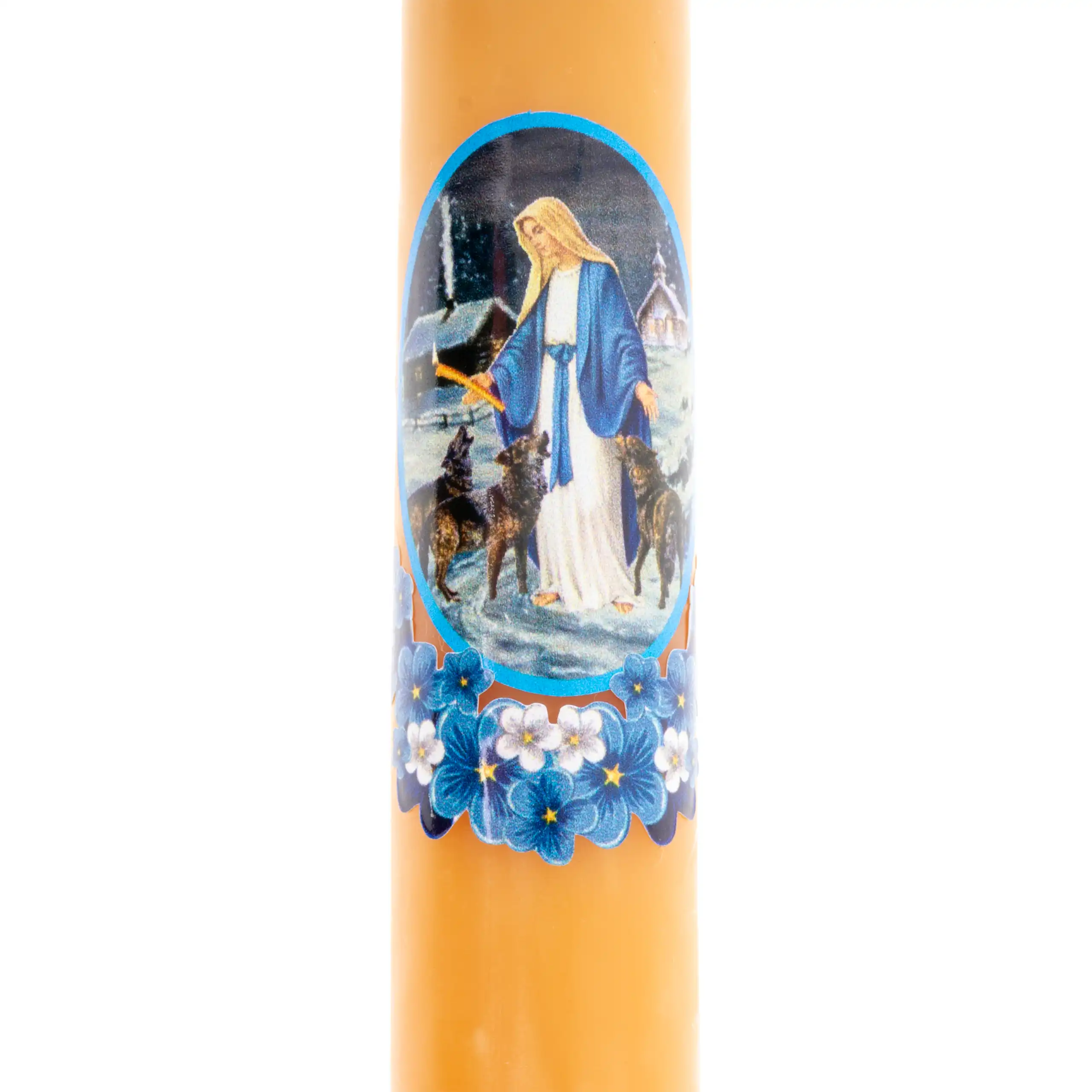 Świeca Gromnica z Wizerunkiem Matki Bożej Gromnicznej w kolorze wosku 19cm