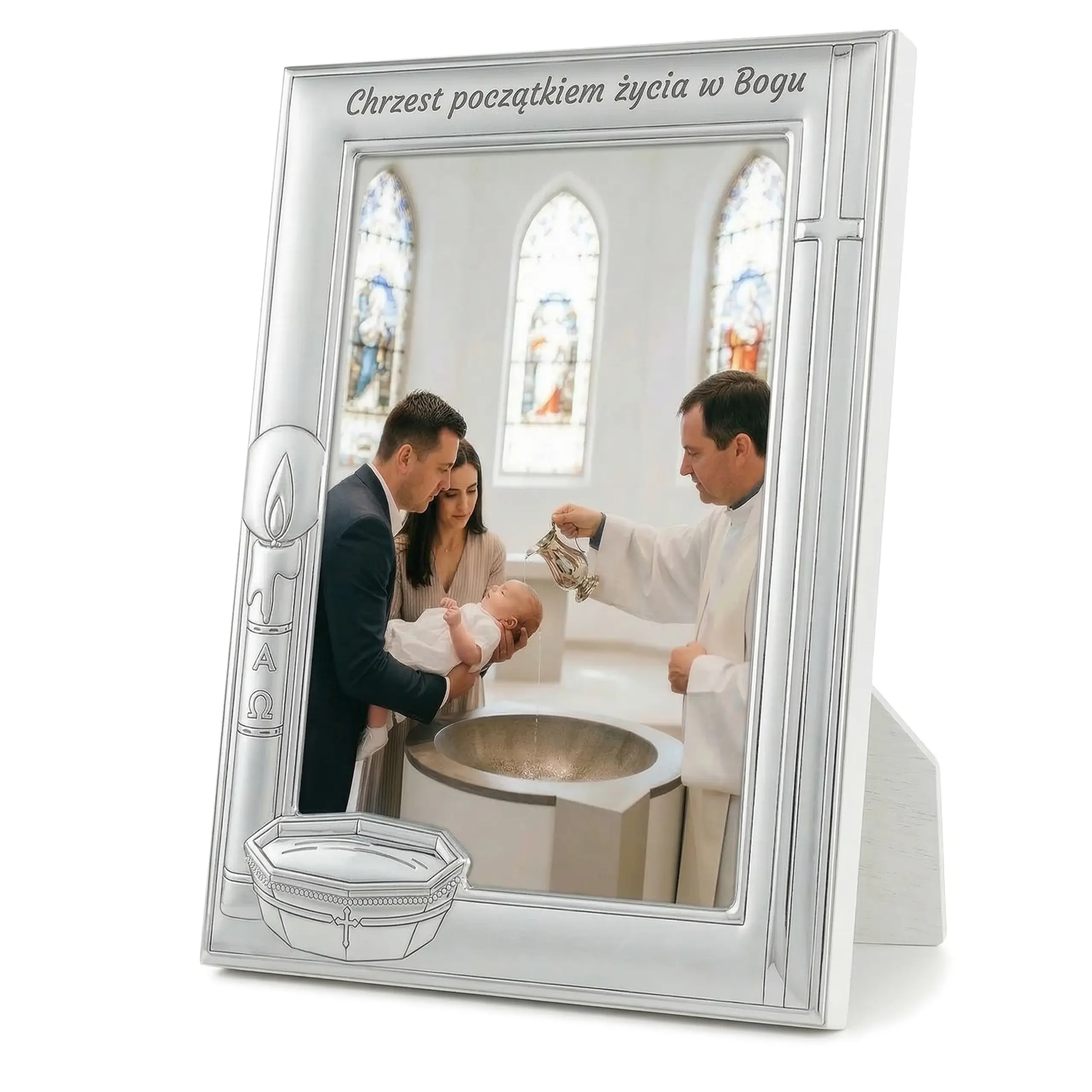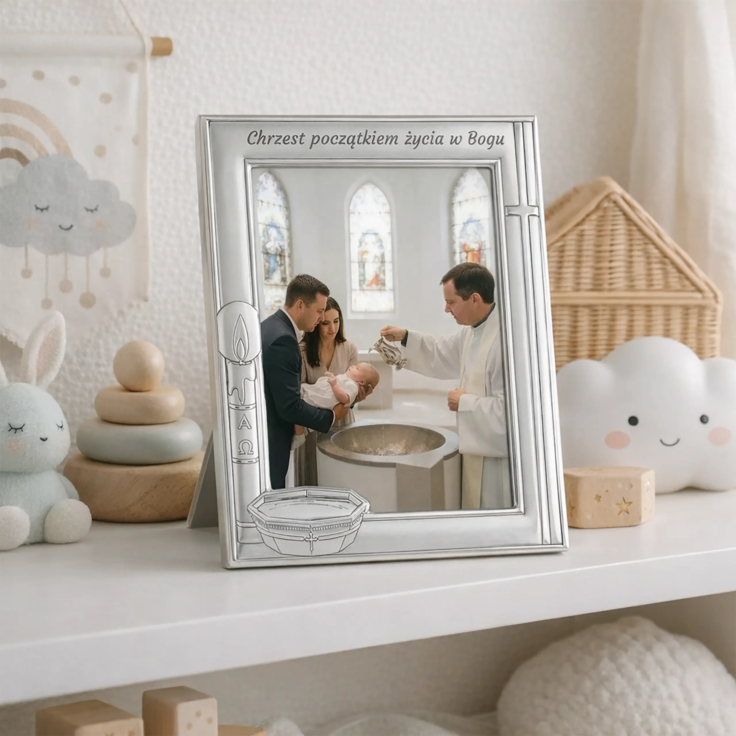 ☑️ Ramka na chrzest srebrna – elegancka pamiątka Chrztu Świętego