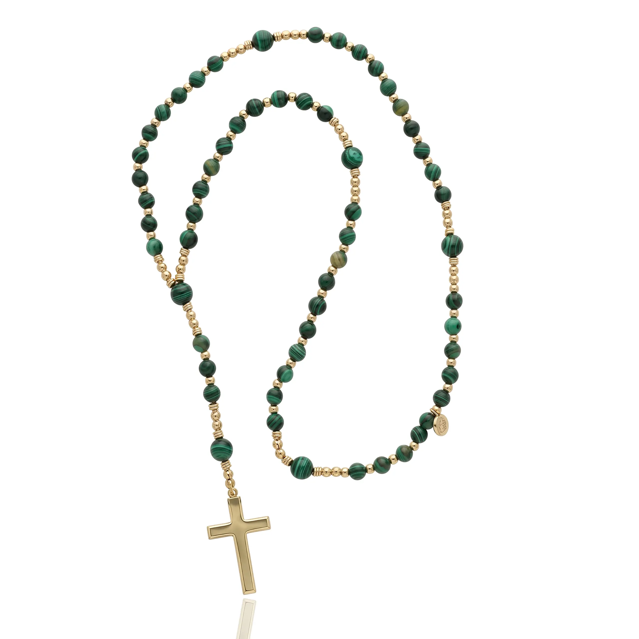 ☑️ Elegancki różaniec zielony ze złotym krzyżem na prezent